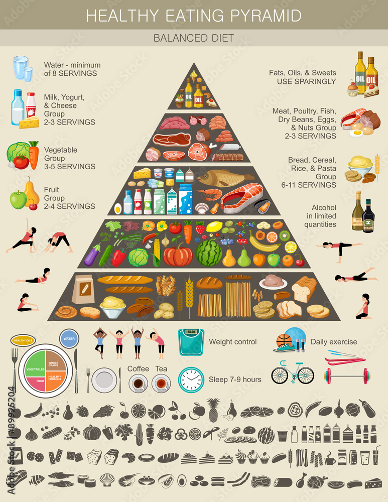 Fotografie Food pyramid healthy eating infographic
