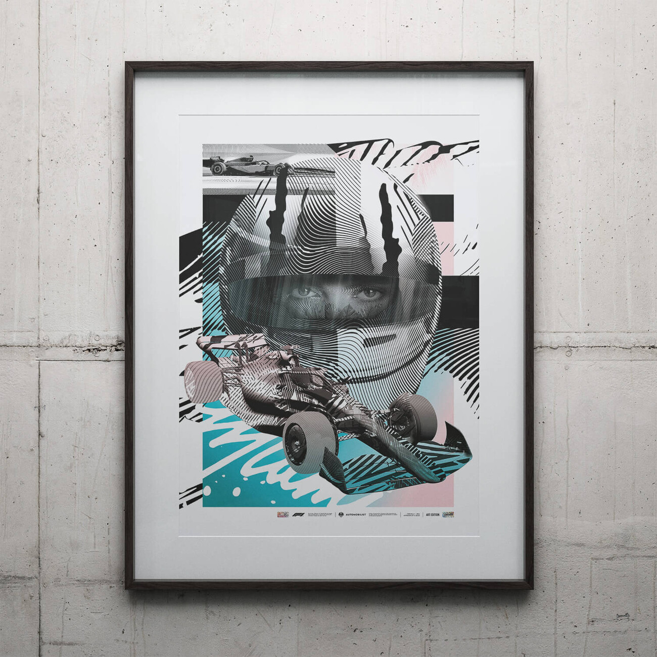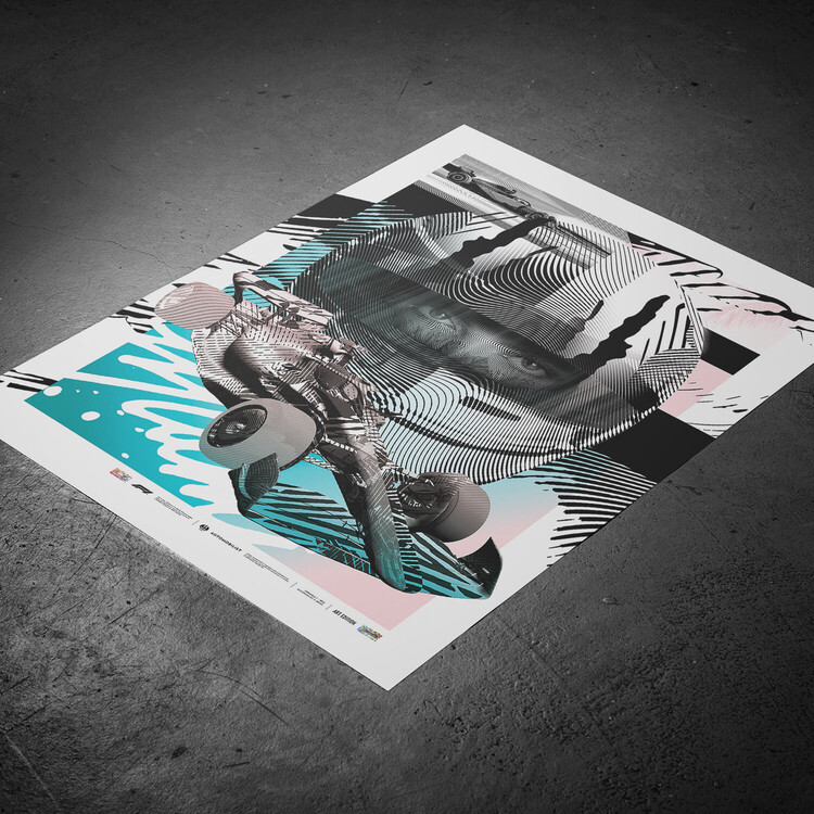 2ALAS' signature style, characterized by intricate designs and a blend of digital and traditional aesthetics, brings a unique perspective never seen on an Automobilist poster. There's an undeniable cinematic quality to Antonaccio's work. As though ripped from a movie poster, the piece captures the electrifying thrill and drama of Formula 1® racing. It's bold and intense, embodying the speed, power, and finesse of Formula 1® world-class drivers.