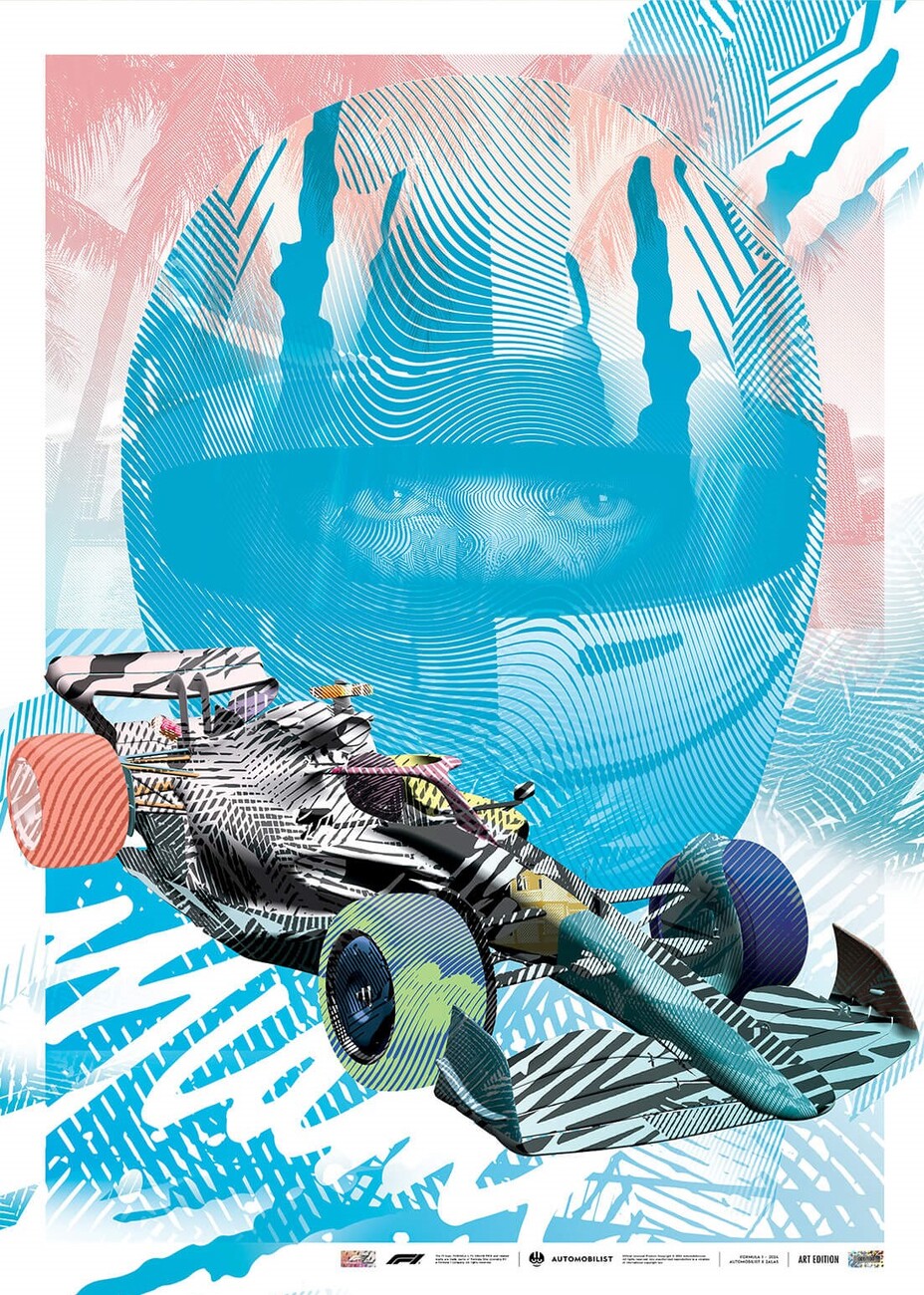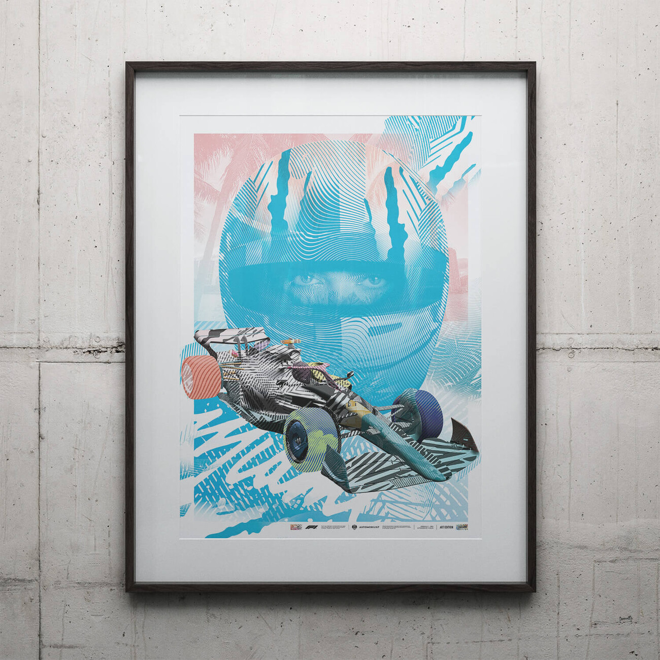 Presenting the Formula 1® Print Store Artist Series - Miami Edition - 2ALAS Limited Edition poster, a collaboration between Automobilist, Blank Walls, Formula 1® and renowned local artist Andrew A. Antonaccio, famously known as 2ALAS. This exclusive piece of art captures the essence of Formula 1® racing and pays tribute to the fearless drivers who push the limits every weekend on the track.