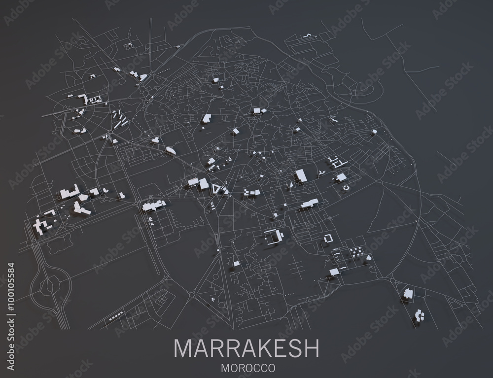 Fototapeta Cartina Marrakesh, vista satellitare, Marocco