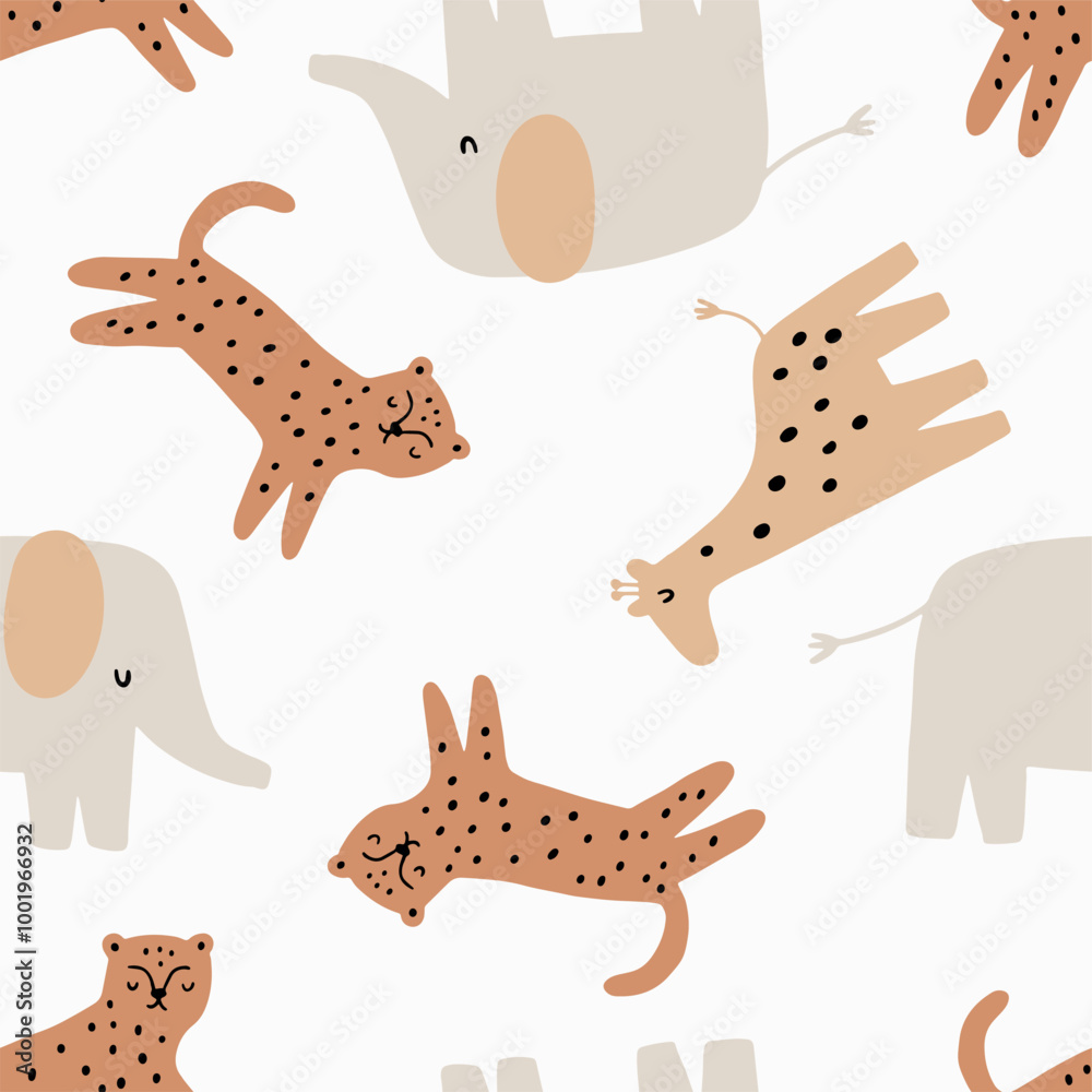 Fototapeta Safari animals cute illustration in doodle style