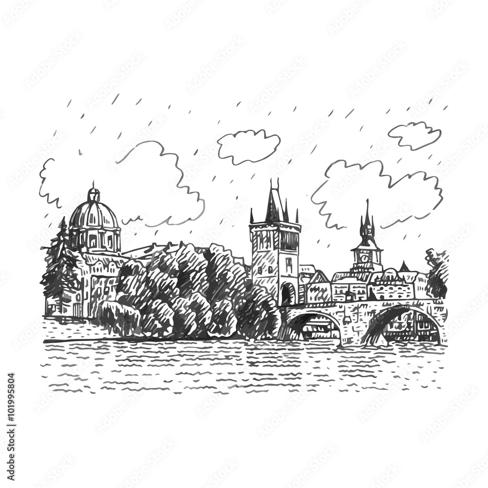 Fototapeta Charles bridge, Prague, Czech Republic. Vector hand drawn sketch.