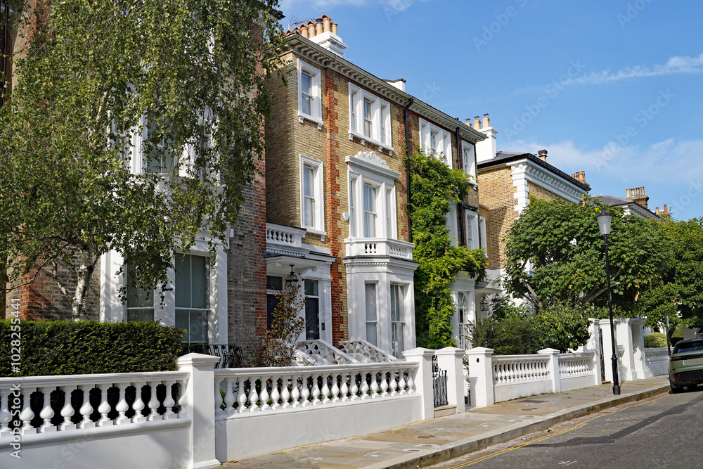 Fototapeta Elegant street of colorful old brick townhouses and apartment buildings in Chels