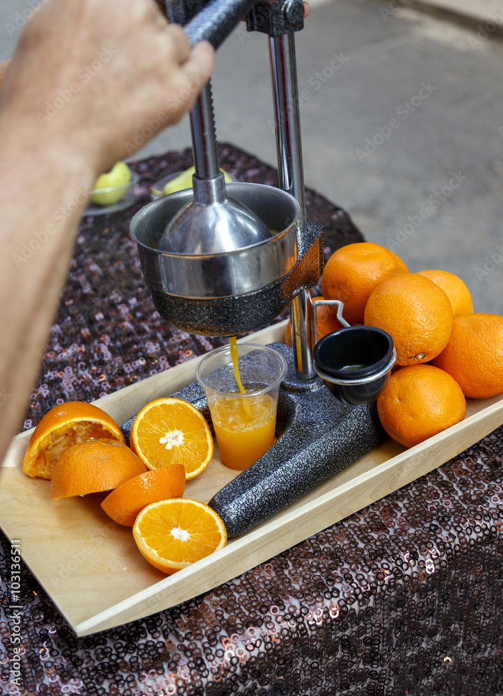 Fototapeta Turkish man sell orange juice in street of istanbul with old met