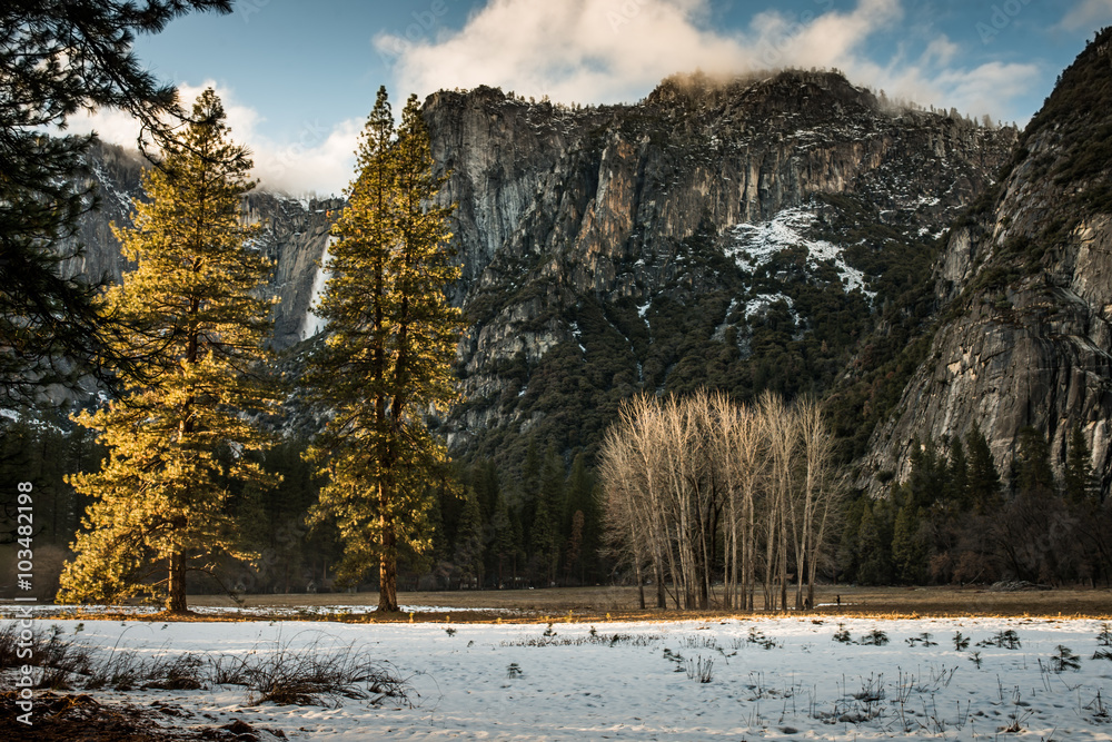 Fototapeta Meadows Covered in Snow in Yosemite Valley