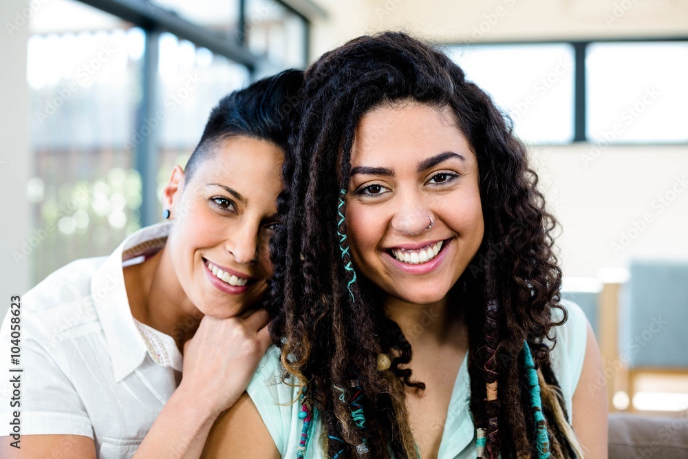 Fototapeta S úsměvem lesbický pár relaxační na pohovce