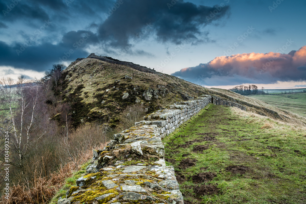 Fototapeta Hadrian's Wall above Cawfield Crags on the Pennine Way walking trail