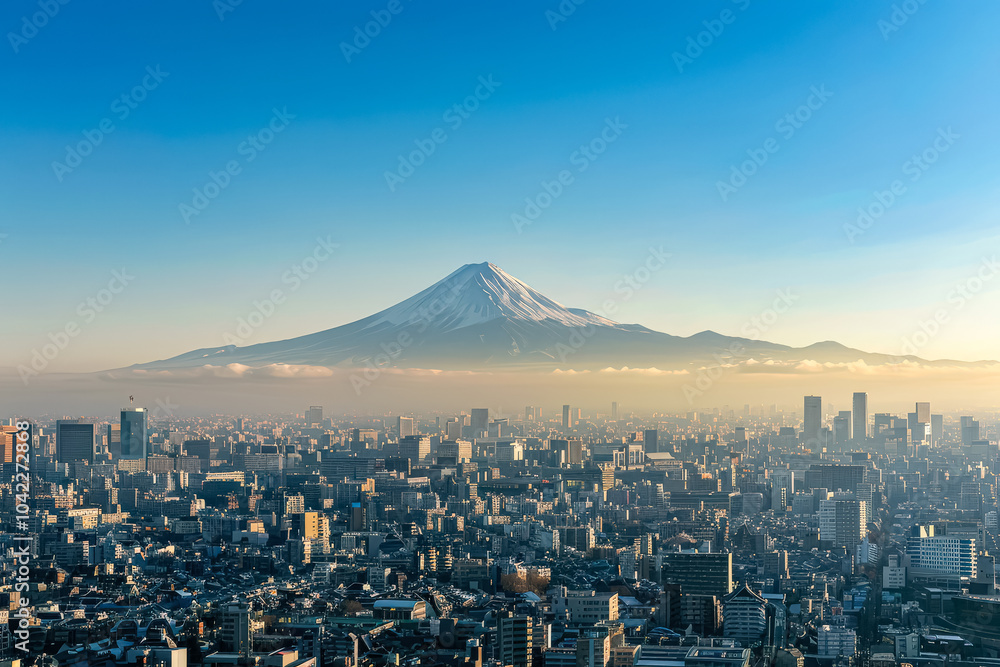 Fototapeta City with a mountain in the background