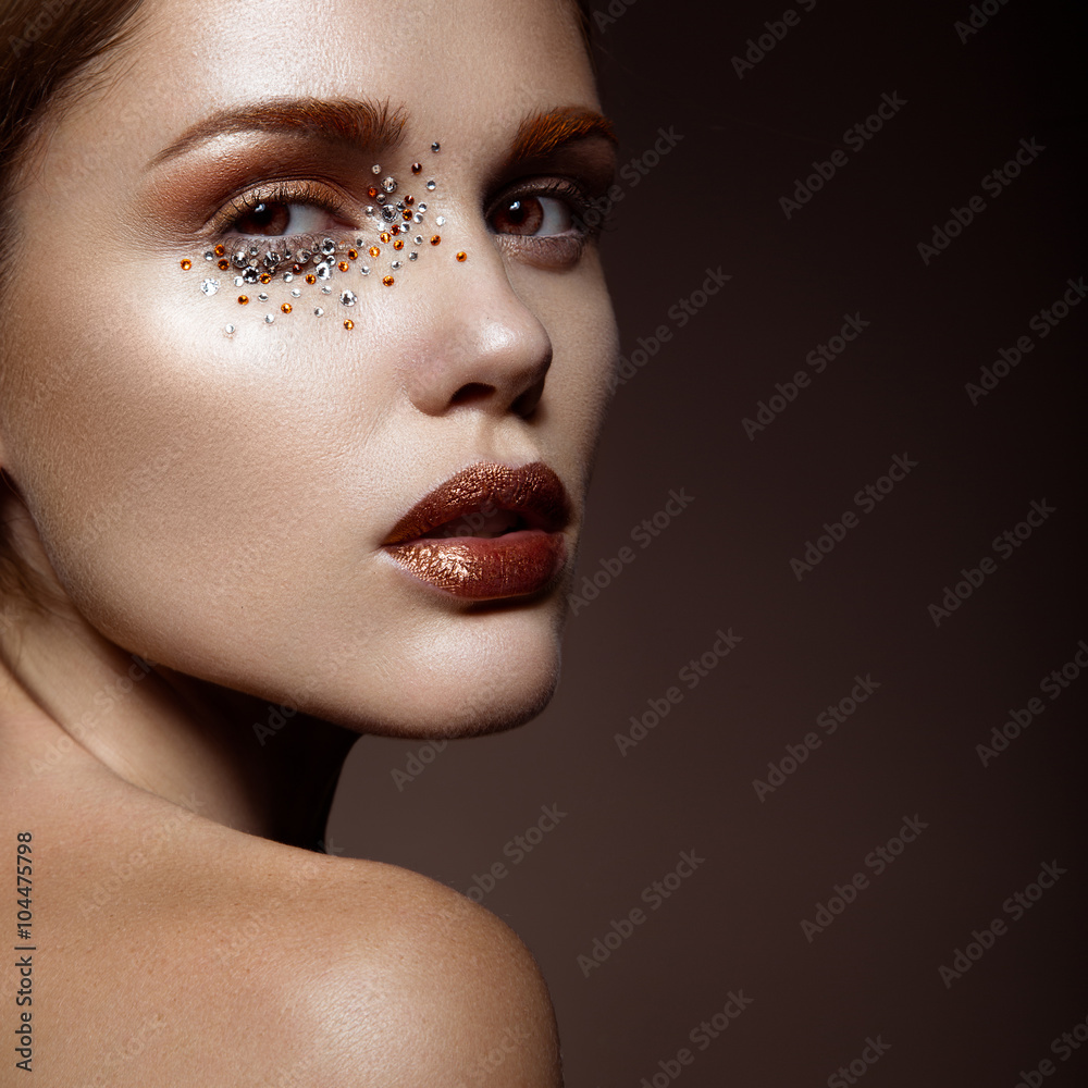 Fototapeta Krásná dívka s jemným make-up a krystaly na tváři.