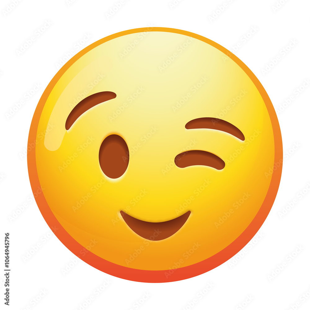 Fototapeta A charming winking emoji face, exuding playful mischief and friendliness with a bright smile and vibrant yellow colors