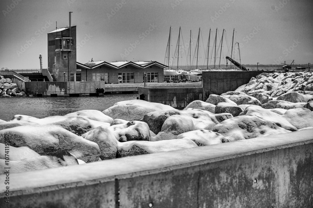 Fototapeta Snow-Capped Coastline: The Tranquil Beauty of the Sea After a Fresh Snowfall