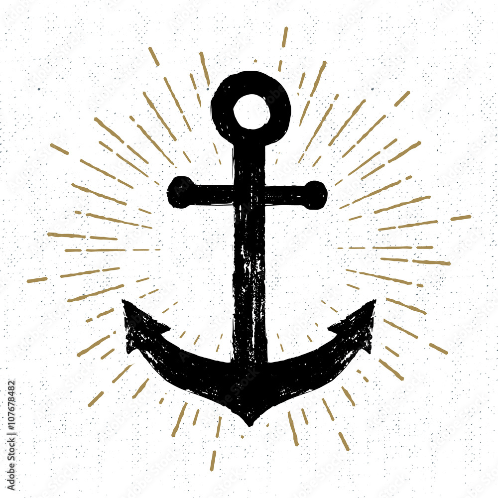 Fototapeta Hand drawn vintage icon with a textured anchor vector illustration