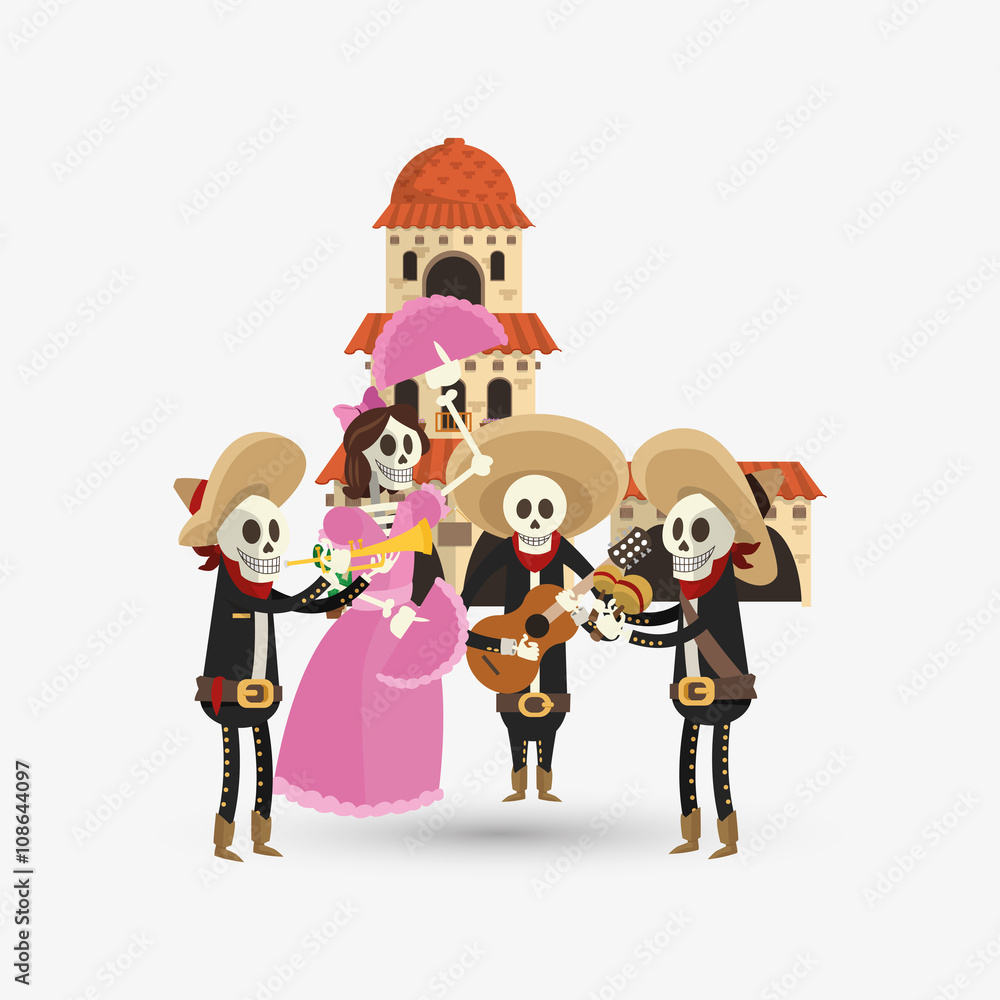 Colorful mexican design over white background