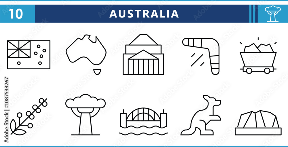 Fototapeta A set of line icons related to Australia