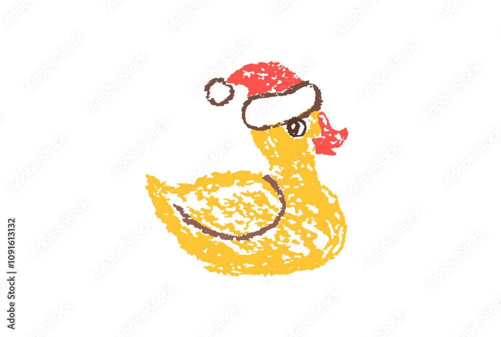 Fototapeta Funny happy yellow rubber duck in Christmas hat