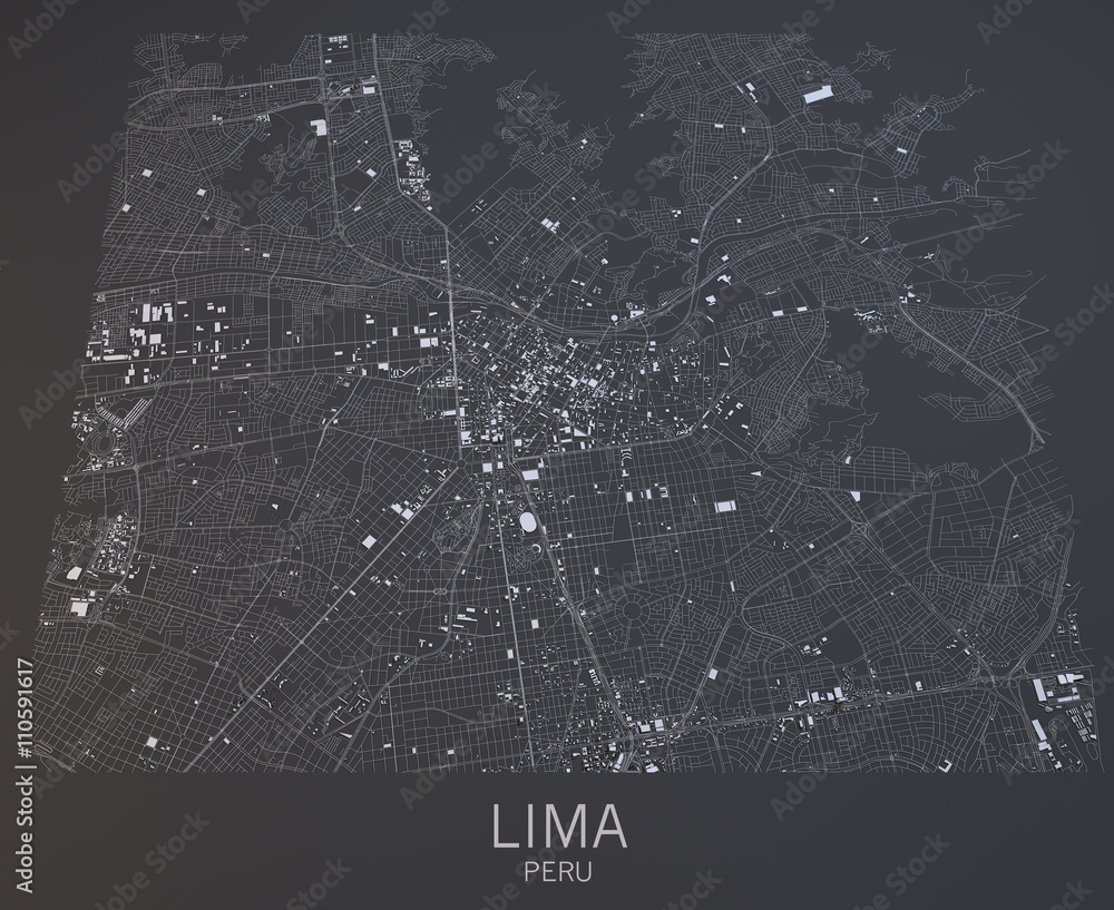 Fototapeta Mappa di Lima, vista satellitare, Perù, America