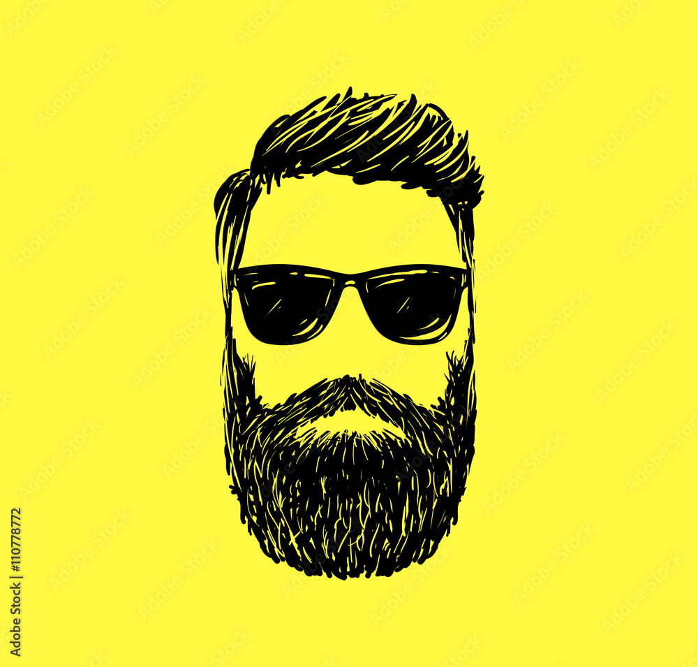 Fototapeta Hipster fashion man hair and beards, Hand drawn vector illustration