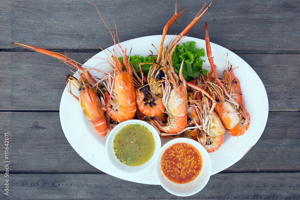 Grilled shrimps on a plate