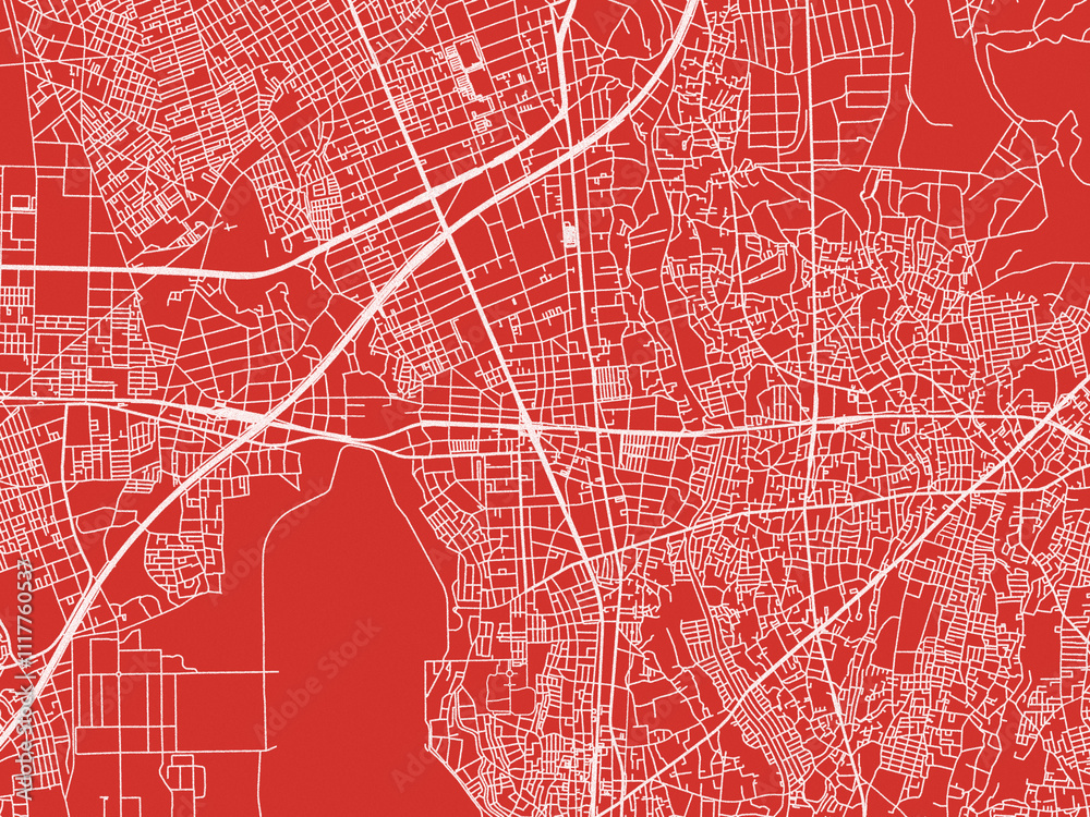 Fototapeta Christmas Map of Yamato, Japan in Snowy White on Festive Red Background