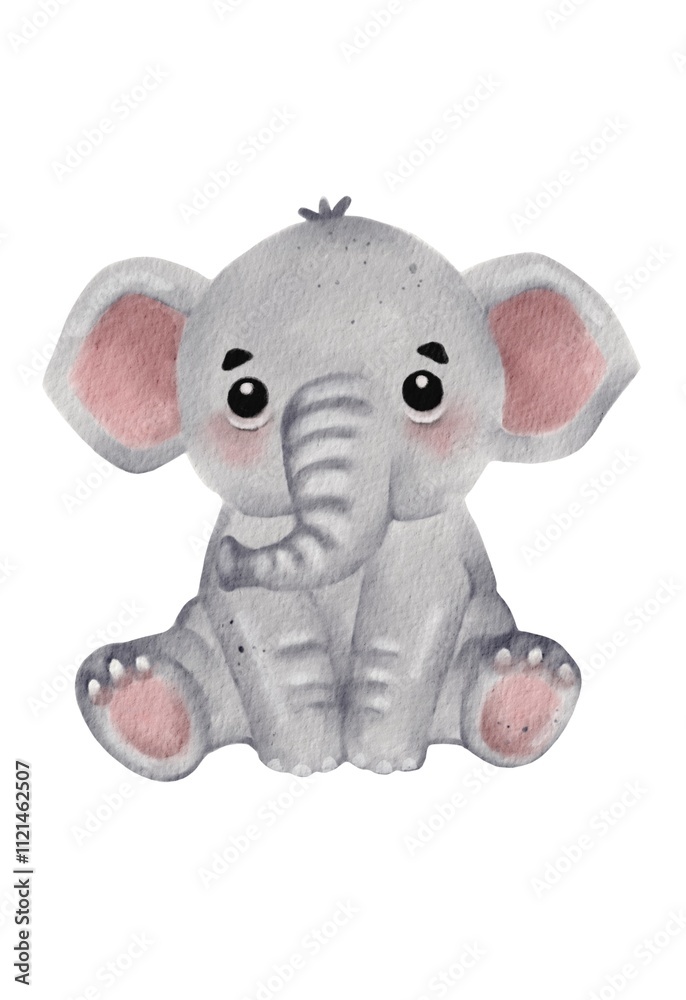 Fototapeta Cute watercolor illustration of a seated elephant with soft pink accents