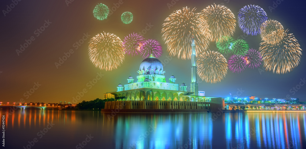 Fototapeta Beautiful fireworks under Putrajaya Mosque, Kuala Lumpur