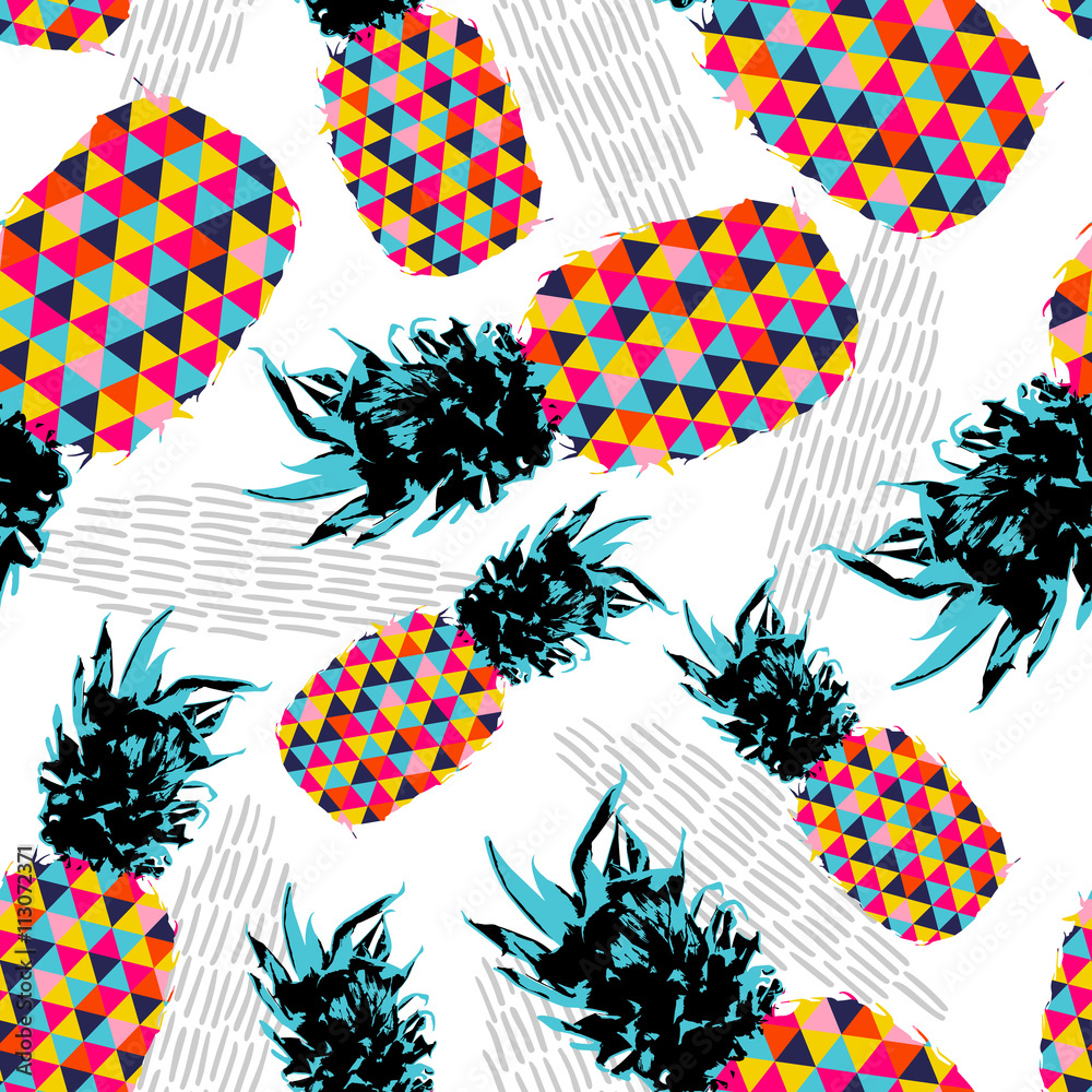 Fototapeta Summer seamless pattern with color retro pineapple