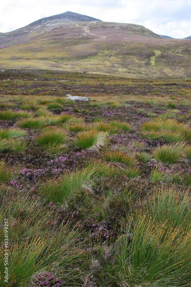 Fototapeta Trail between Broad Cairn summit, Loch Muick and Spittal of Glenmuick in the bac