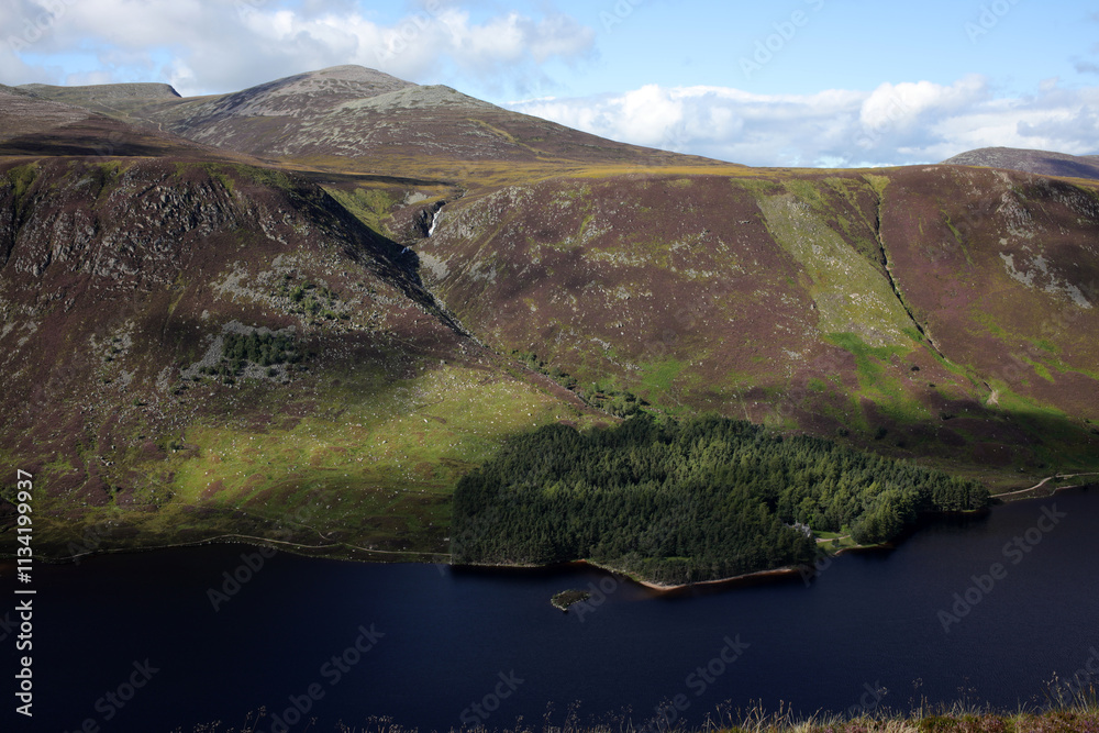 Fototapeta Trail between Broad Cairn summit, Loch Muick and Spittal of Glenmuick in the bac