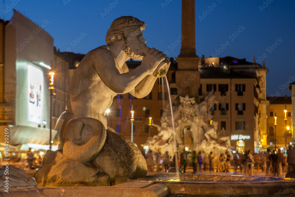 Fototapeta Fontana del Moro on Piazza Navona at night, Rome