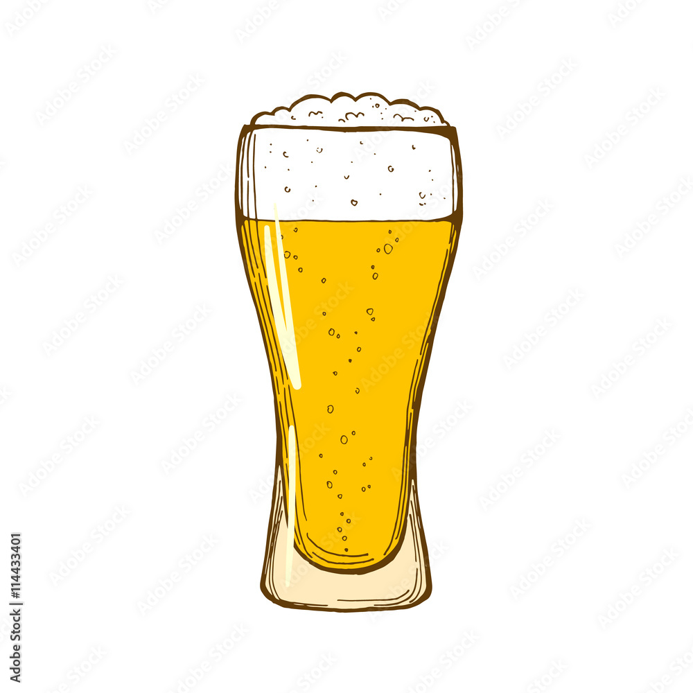 Glass of beer isolated on white background, hand-drawing. Vector.