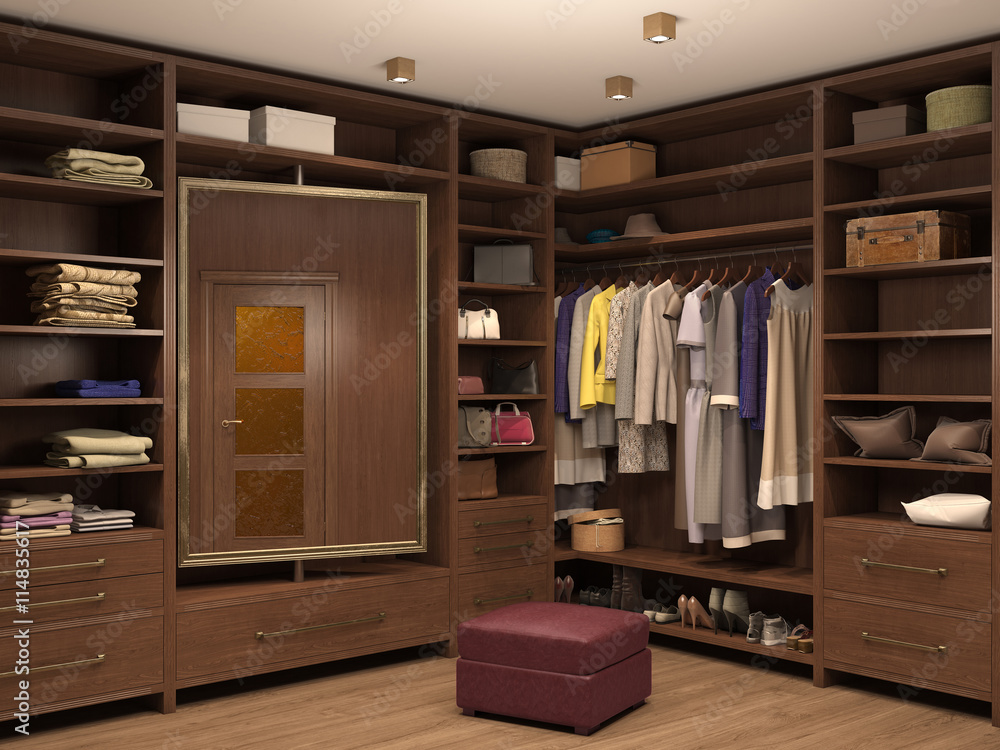 Fototapeta Empty white dressing room; interior of a modern house. 3d illust