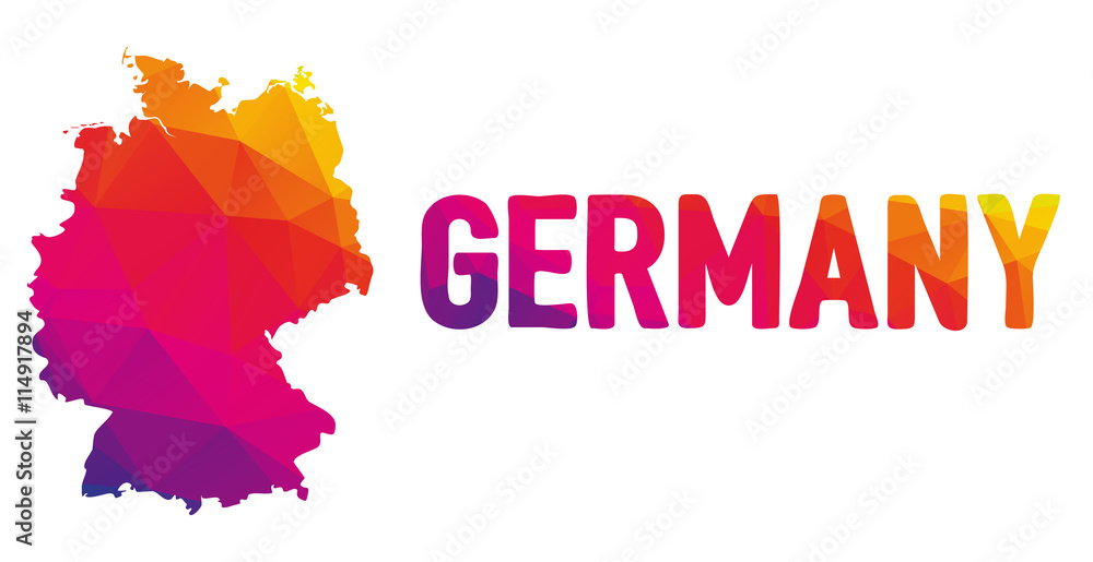 Fototapeta Low polygonal map of Germany in warm colors, Deutschland, Federal Republic of Ge