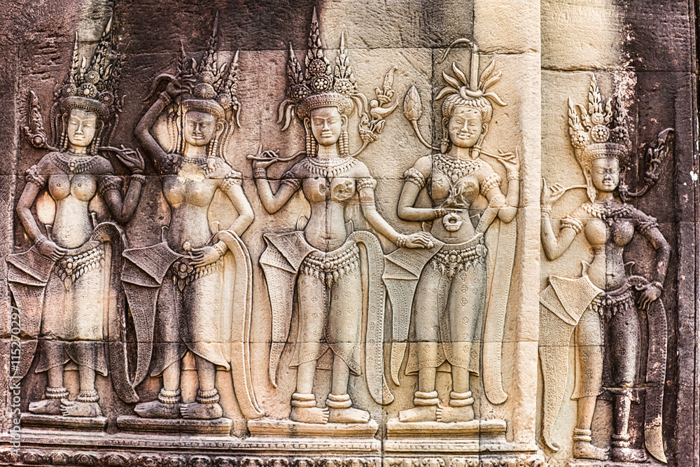 Fototapeta Apsara sculpture on the wall of Angkor Wat, Seam Reap, Cambodia.