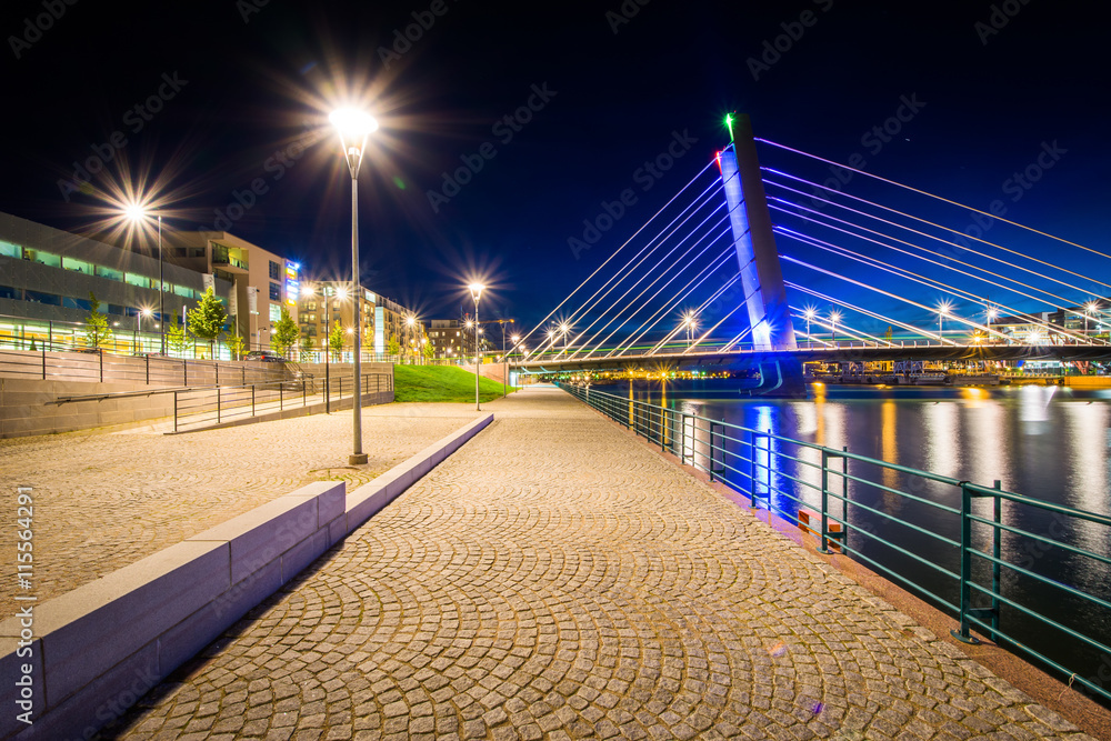 Fototapeta Crusell Bridge at night, over the Ruoholahti Canal, in Helsinki,