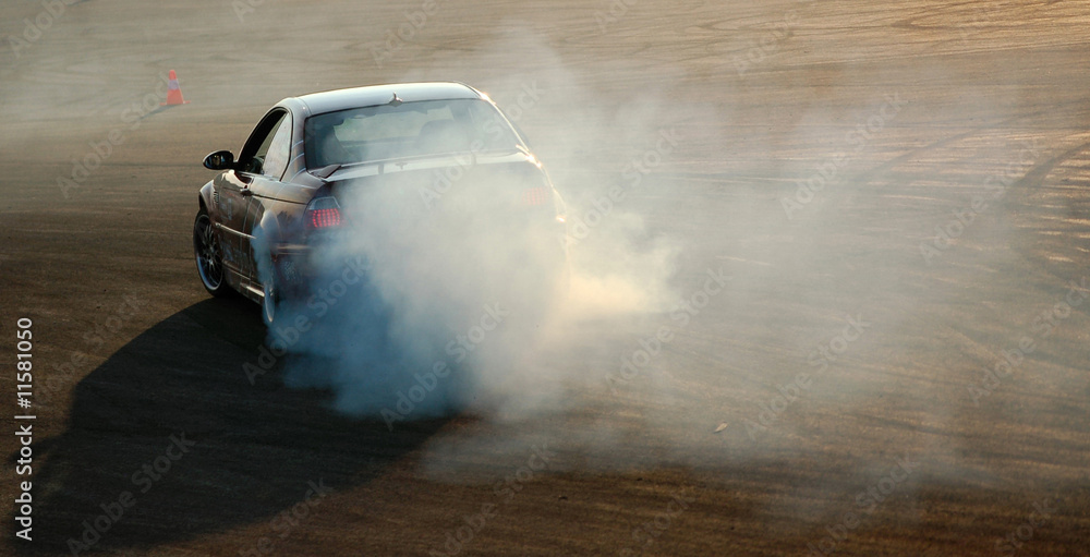 Fototapeta Car drifting with smoke trail