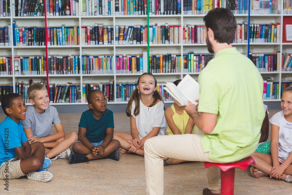 Teacher teaching kids in library
