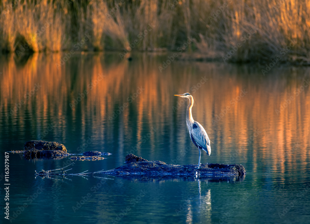 Fototapeta Great Blue Heron on Chesapeake Bay Golden Pond