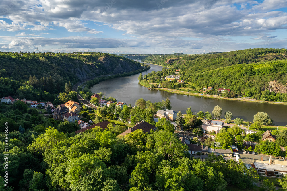 Fototapeta Aerial view of Prague Suchdol-Sedlec in May 2022