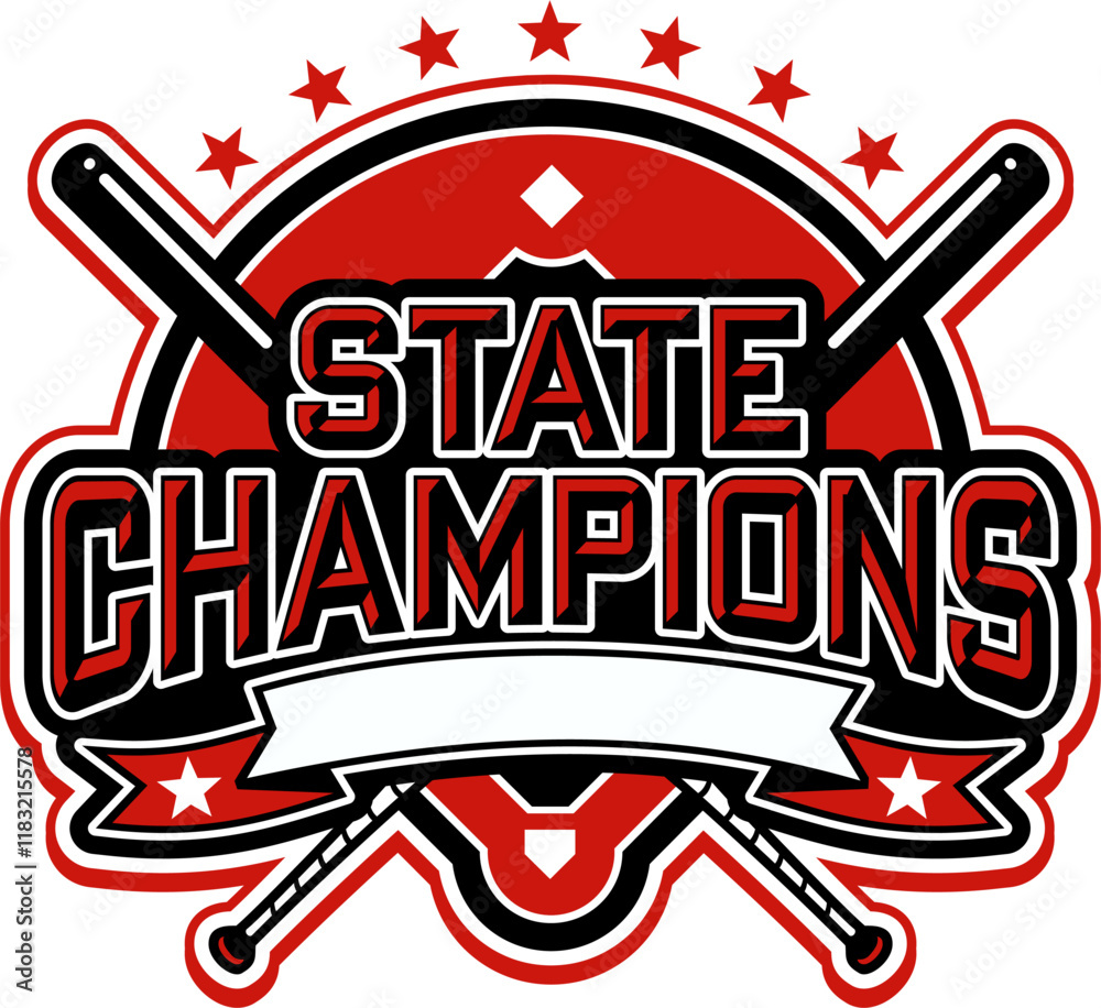 Fototapeta state champions in baseball team design with diamond and banner for school, coll