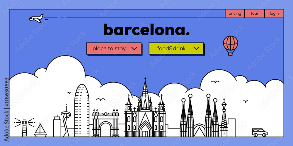 Fototapeta Barcelona Modern Web Banner Design with Vector Linear Skyline