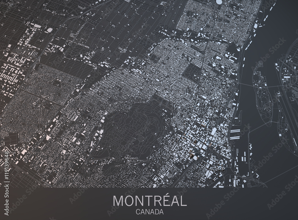 Fototapeta Cartina di Montreal, vista satellitare, città, Quebec, Canada
