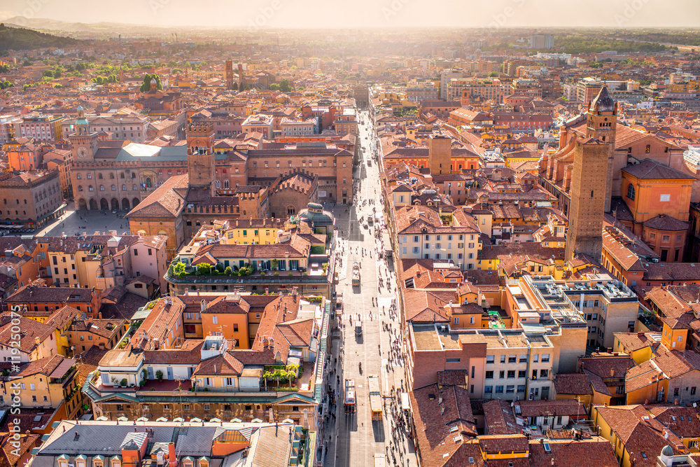 Fototapeta Aerial cityscape view from the tower on Bologna old town in Italy