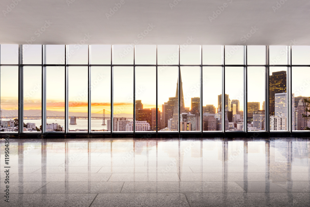 Fototapeta cityscape and skyline of san francisco at sunrise from window