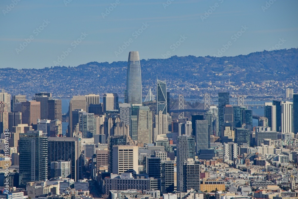 Fototapeta Looking over the skyline of San Francisco on a beautifully clear winter day