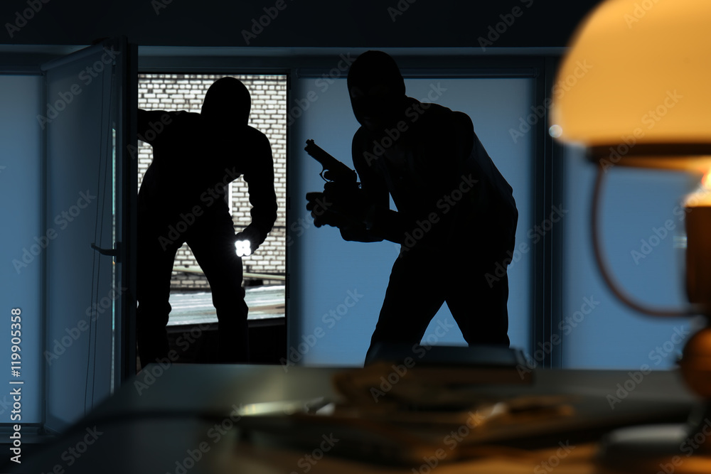 Fototapeta Armed thieves entering a house