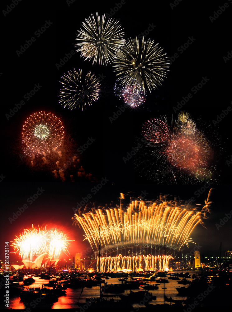 Fototapeta New Years Eve fireworks on Sydney harbour.Australia.