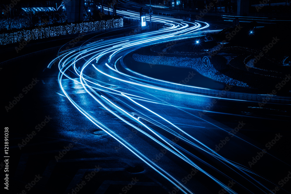 Fototapeta high angle view of traffic light trails,shanghai,china.