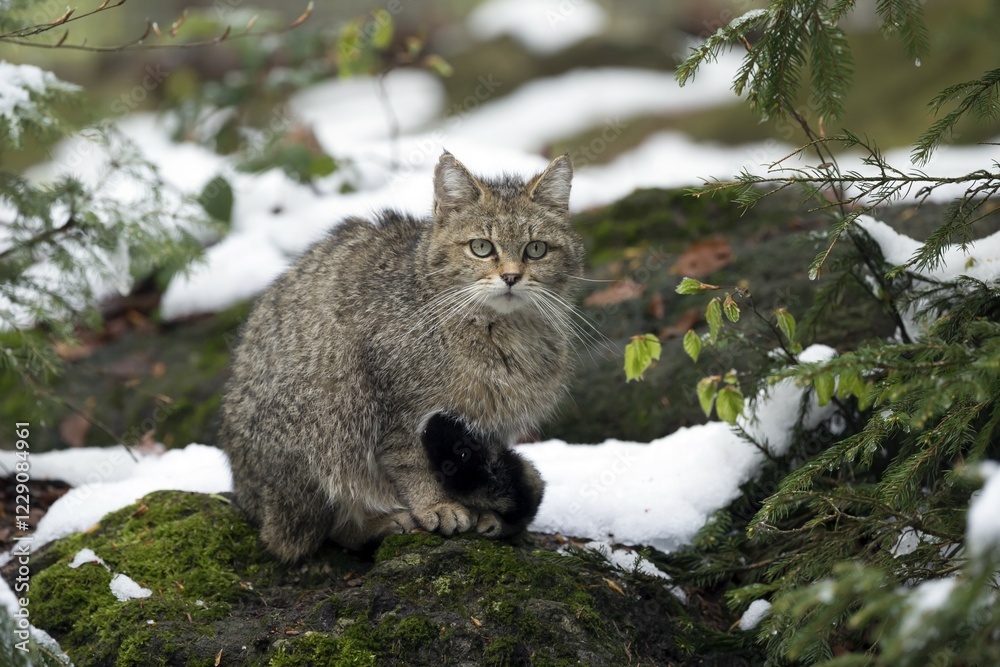 Fototapeta Wildcat (Felis silvestris), on rock, Germany, Europe