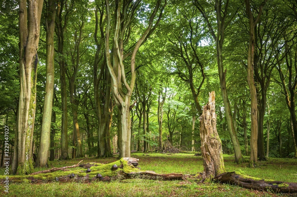 Fototapeta Beech primeval forest with deadwood, evening mood, Jasmund National Park, Island