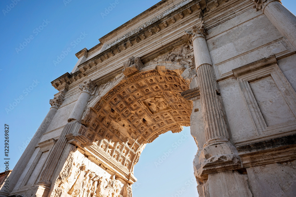 Fototapeta Low-angle view of a detailed ancient Roman triumphal arch